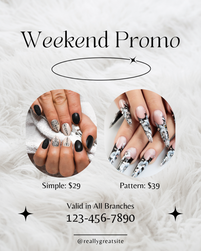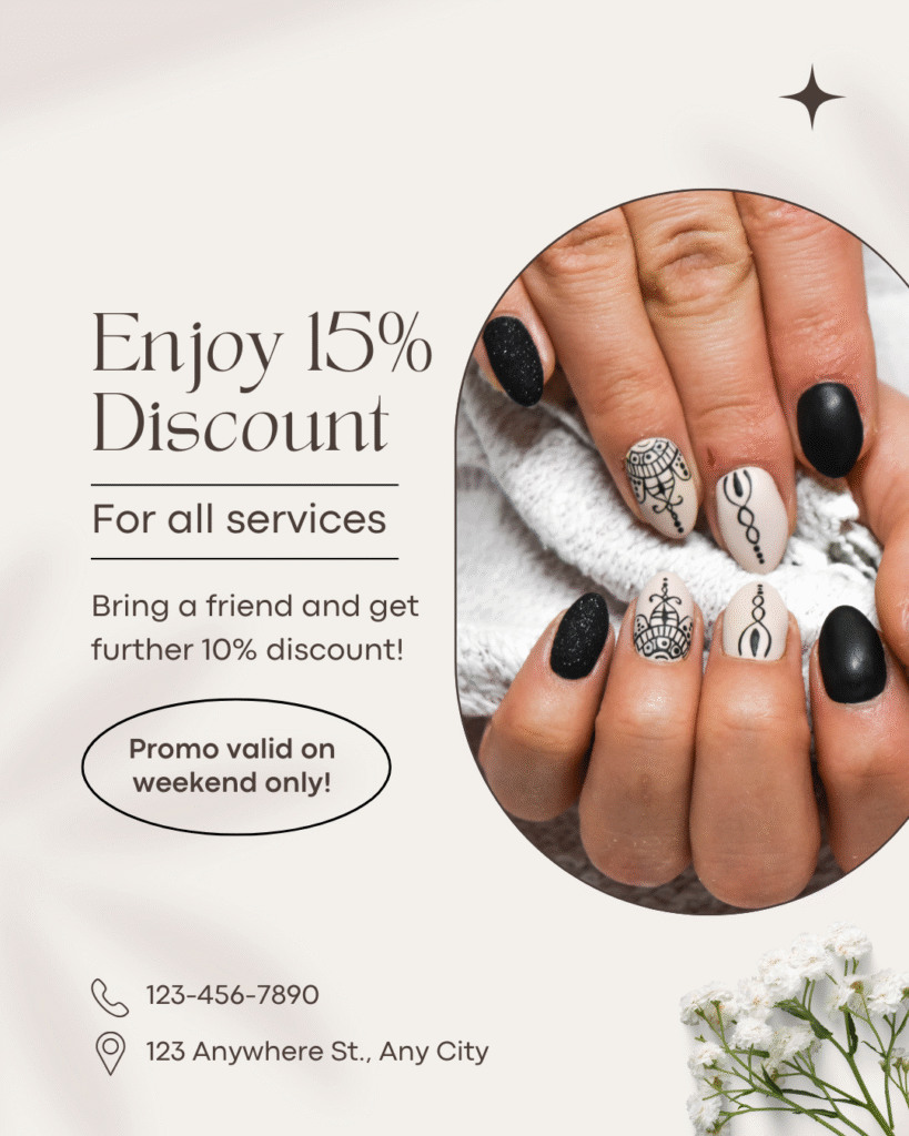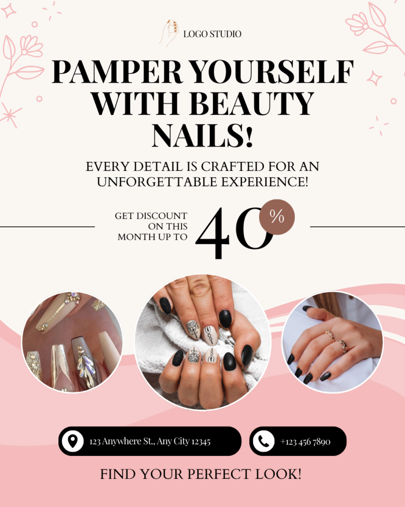 Your local nail salon for effortless beauty and care at 123 Address St, City St 12345.